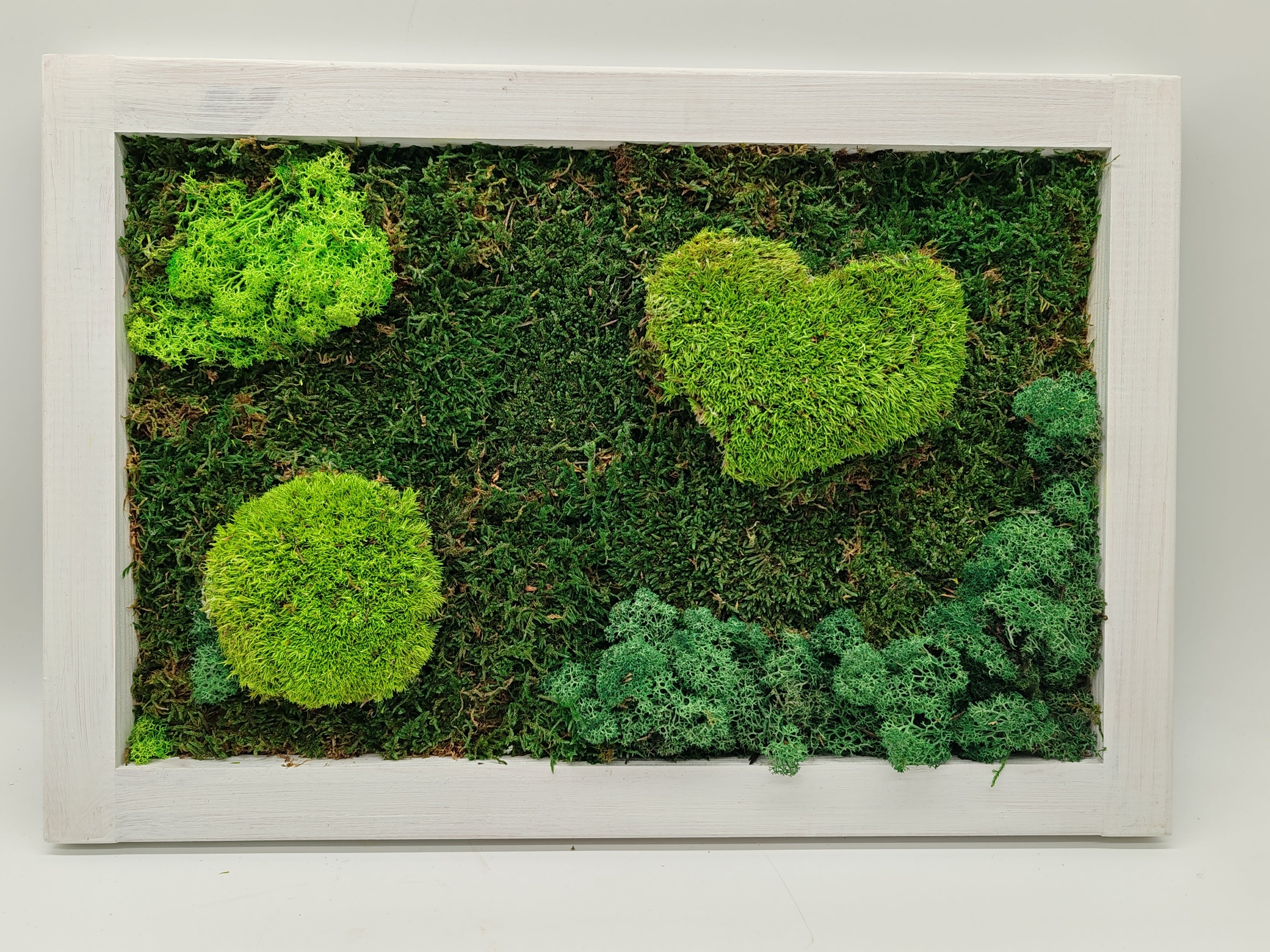 Tuo tilaan rauhaa ja vihreyttä ilman kastelua tai hoitoa. Sammaltaulumme on valmistettu stabiloidusta metsäsammalesta, joka ei kasva, ei vaadi valoa eikä vettä – ja pysyy kauniina vihreänä vuosia.